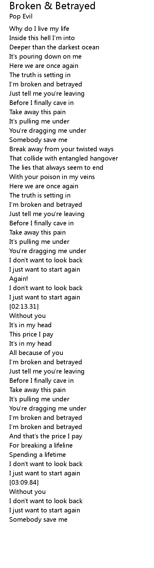 I'm broken and betrayed |