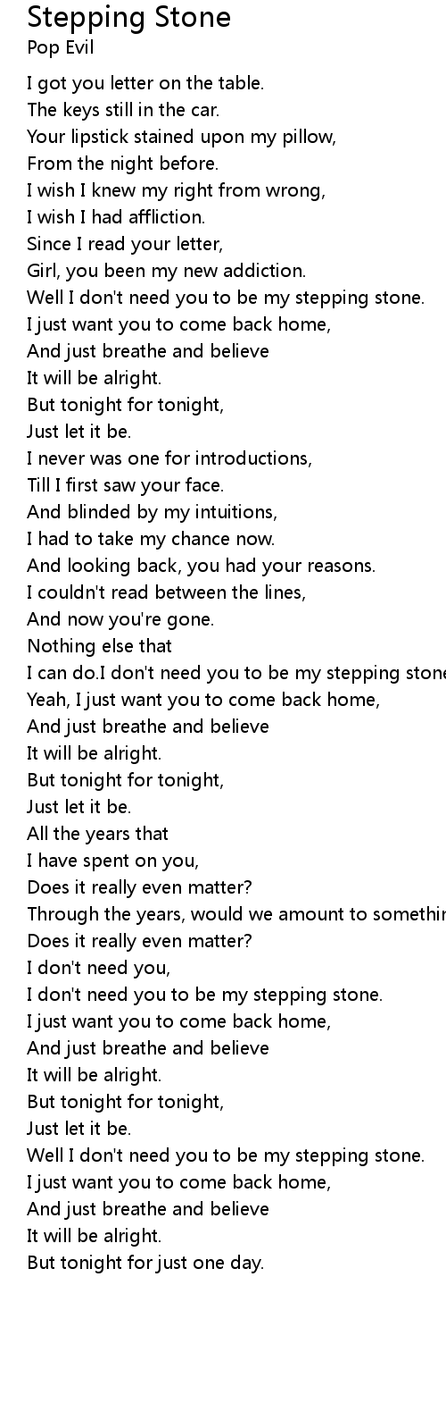 Well I don't need you to be my stepping stone. |