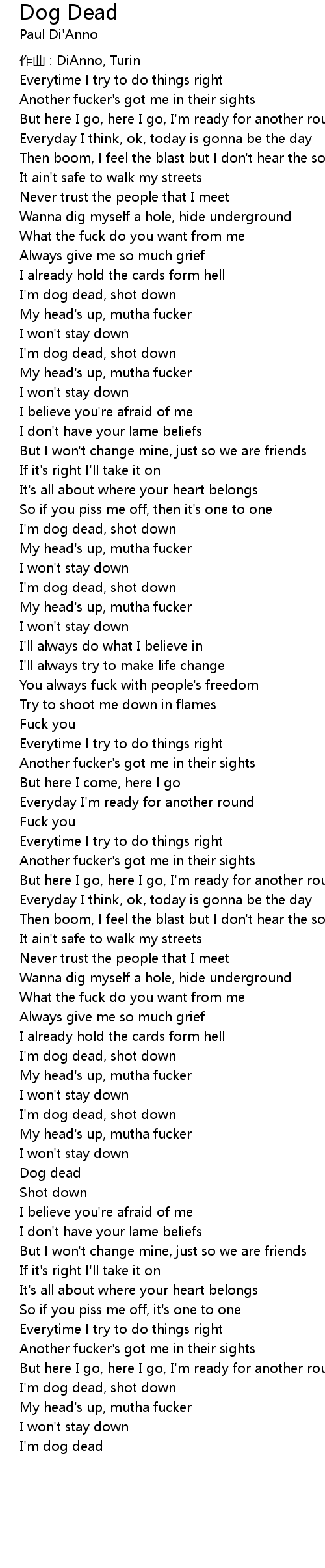 | Song | Dog Dead |