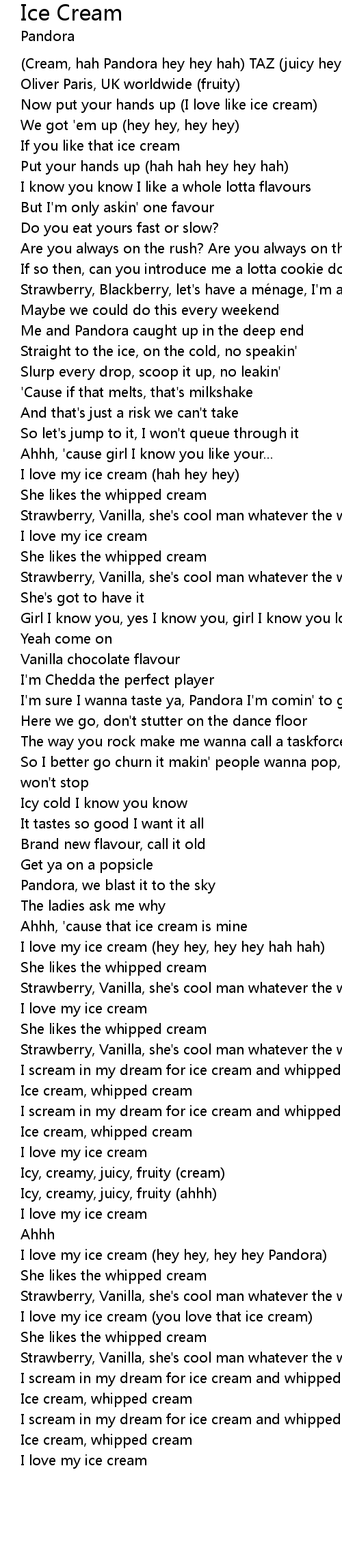 | I love my ice cream hey hey, hey hey Pandora | |