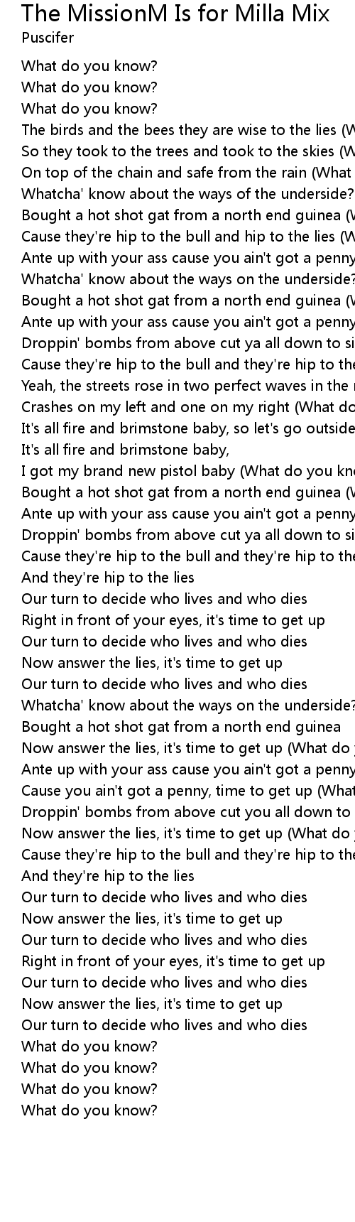 Now answer the lies, it's time to get up (What do you know?) ' |