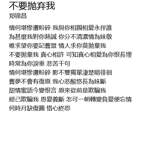 | 不要拋棄我 真心相許 可知真心相愛為你恨長埋 | |
