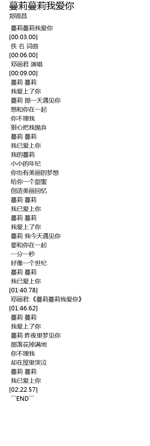 | [00:00.00] | 蔓莉蔓莉我爱你 |