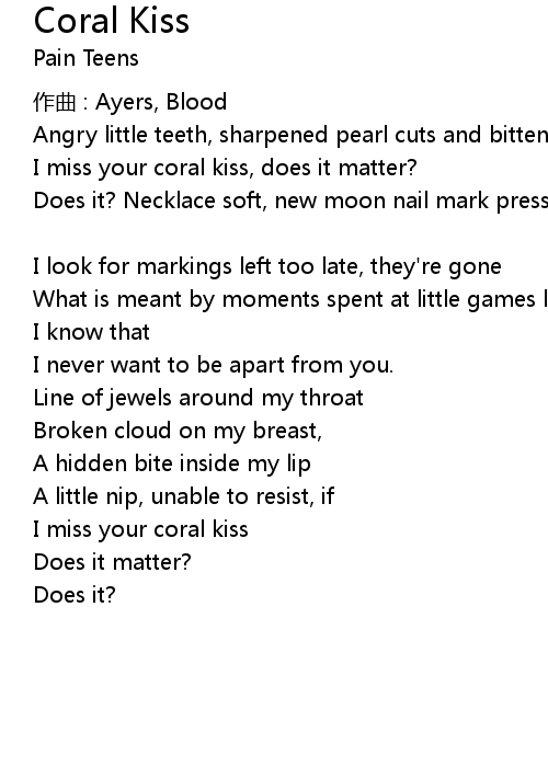 | Angry little teeth, sharpened pearl cuts and bitten, my bruised lips if | |