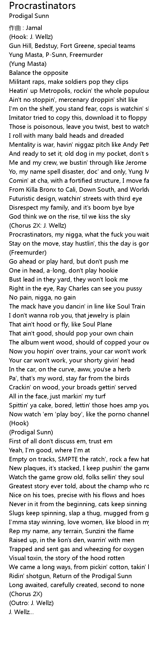 | Procrastinators, my nigga, what the fuck you waitin' on? | |