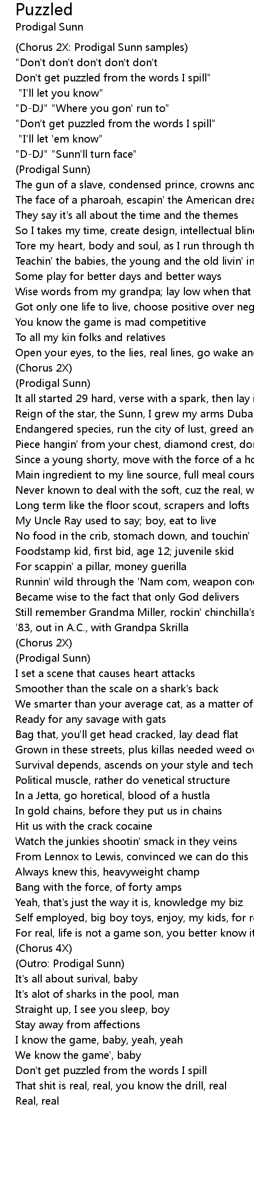 (Chorus 2X: Prodigal Sunn samples) |