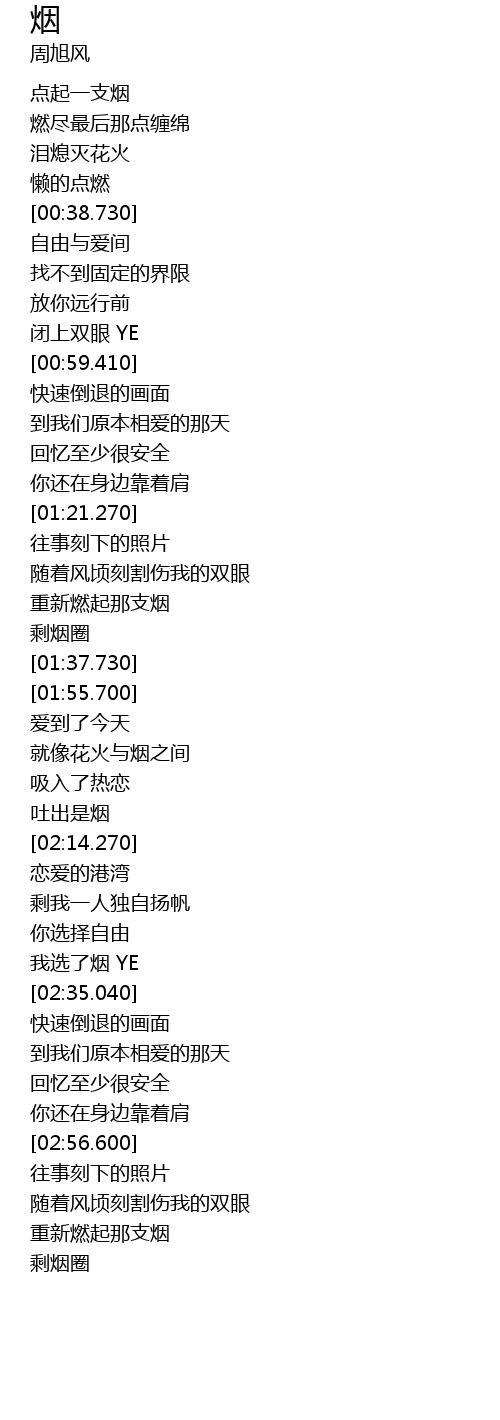 | [02:30.640] | 我选了烟 YE |