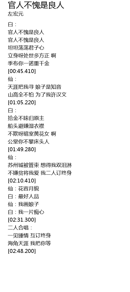 | [00:13.750] | guān rén bù kuì shì liáng rén |