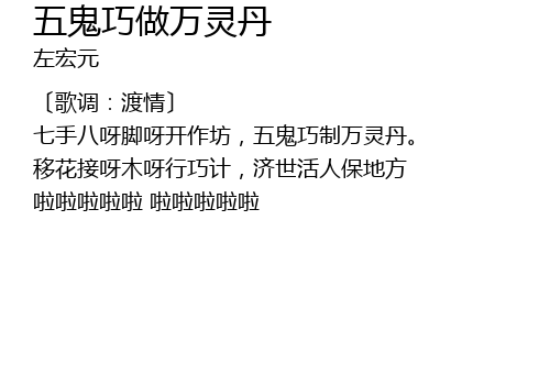| [00:14.920] | 七手八呀脚呀开作坊,五鬼巧制万灵丹。 |