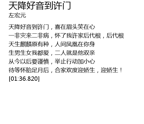 | [00:37.120] | 天降好音到许门,喜在眉头笑在心 |