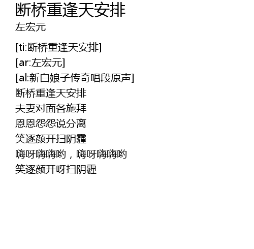 | [00:19.18] | duàn qiáo chóng féng tiān ān pái |