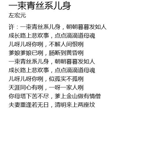 | [01:13.750] | 一束青丝系儿身,朝朝暮暮发如人 |