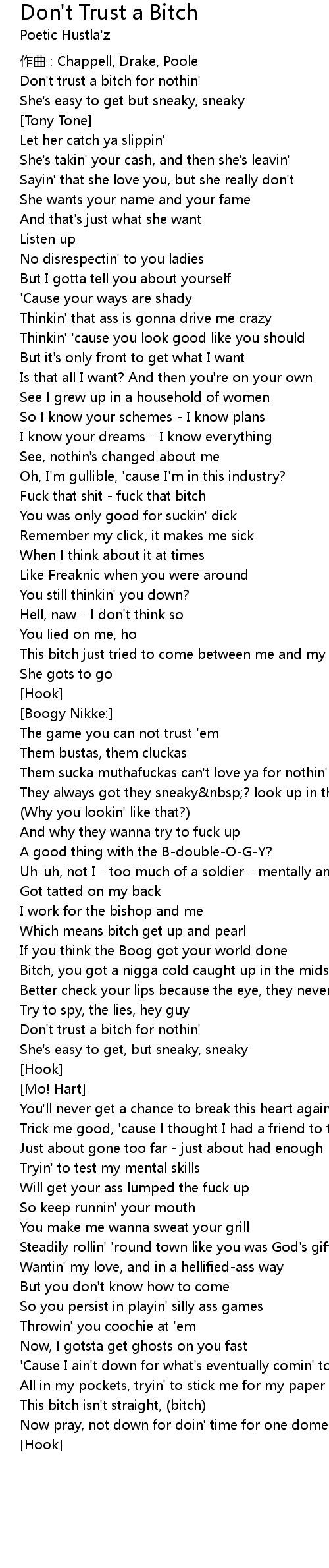 | Bitch, you got a nigga cold caught up in the midst of your twist | |