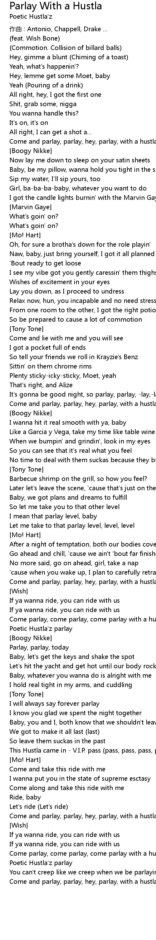 | Come and parlay, parlay, hey, parlay, with a hustla | |