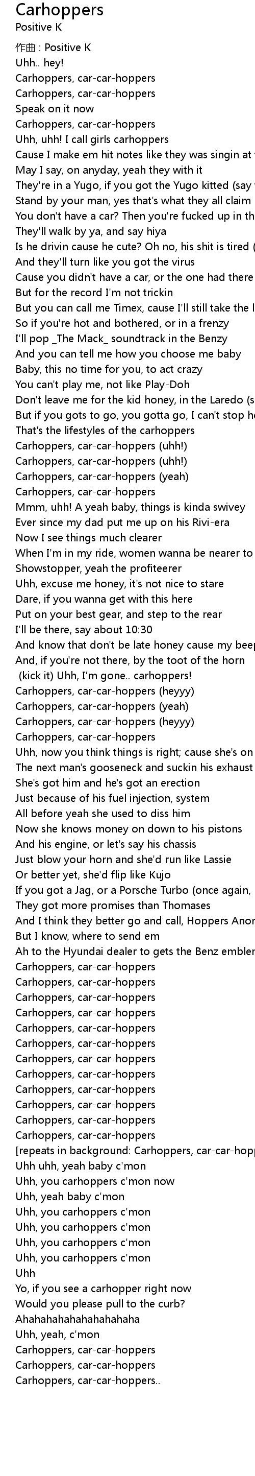 | BEEP kick it Uhh, I' m gone.. carhoppers! | |