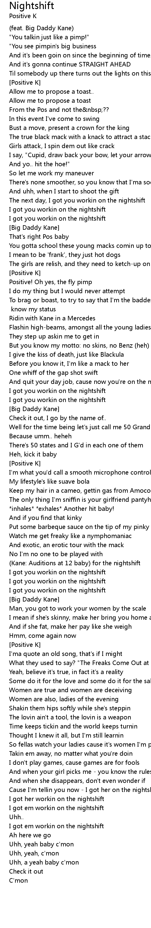 Cause I'm tellin you now - I got her on the nightshift! |