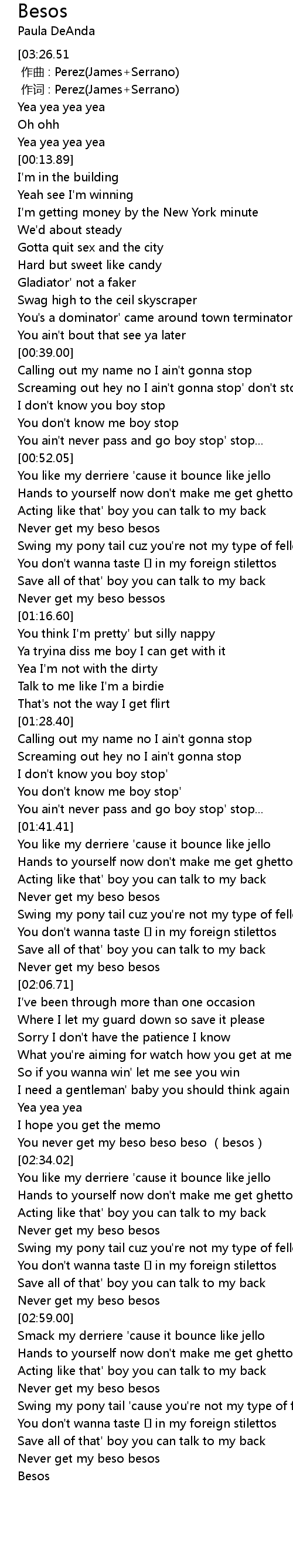 | [02:30.07] | You never get my beso beso beso (besos) |