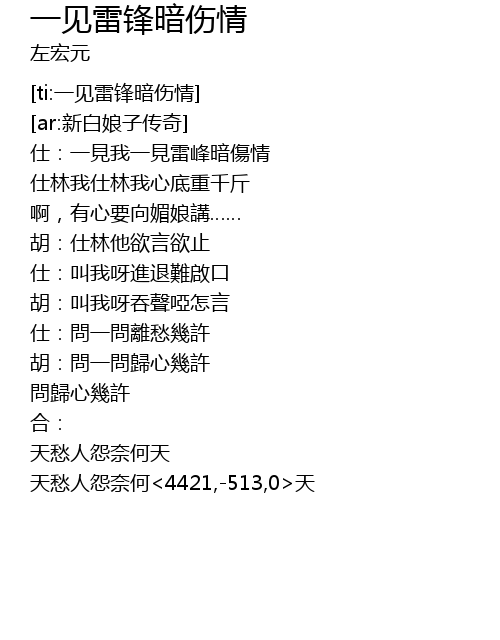 | [00:00.856] | 仕:一見我一見雷峰暗傷情 |