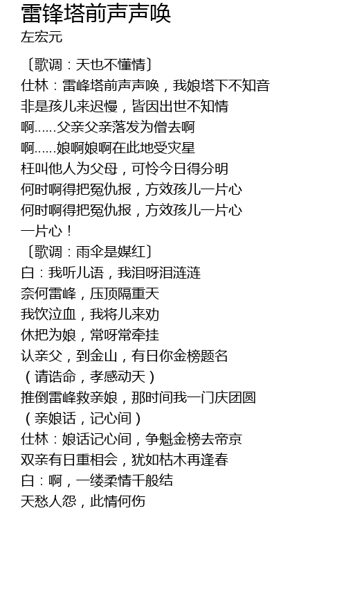| [03:18.430] | 推倒雷峰救亲娘,那时间我一门庆团圆 |