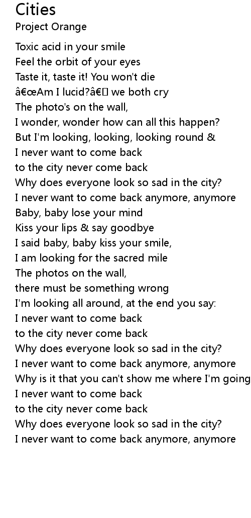 | to the city never come back | |
