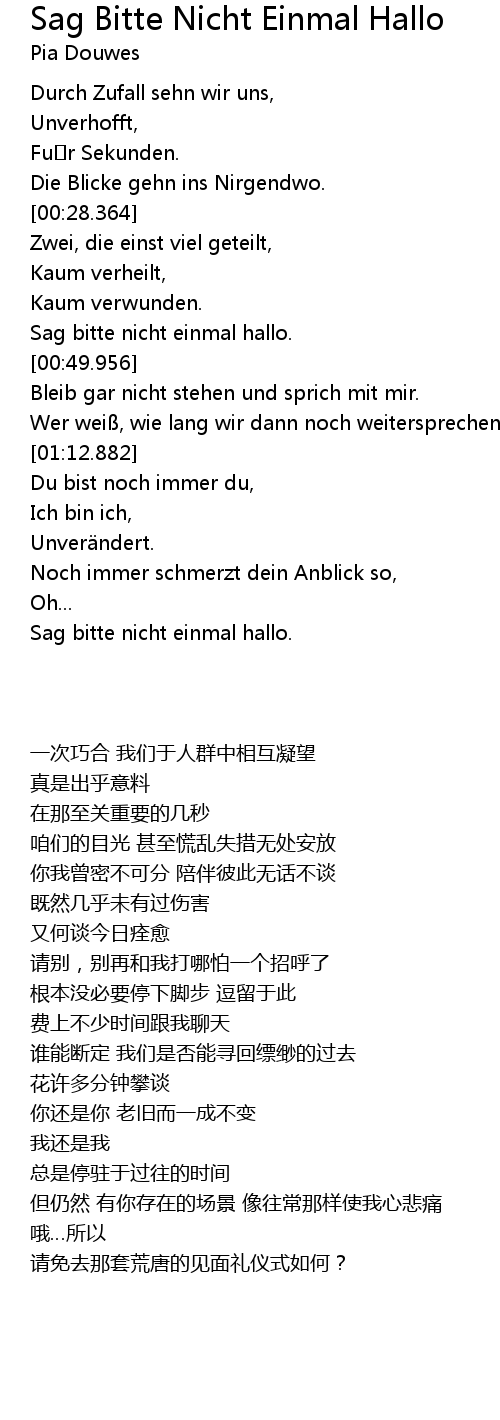 | [01:35.008] | Sag bitte nicht einmal hallo. |