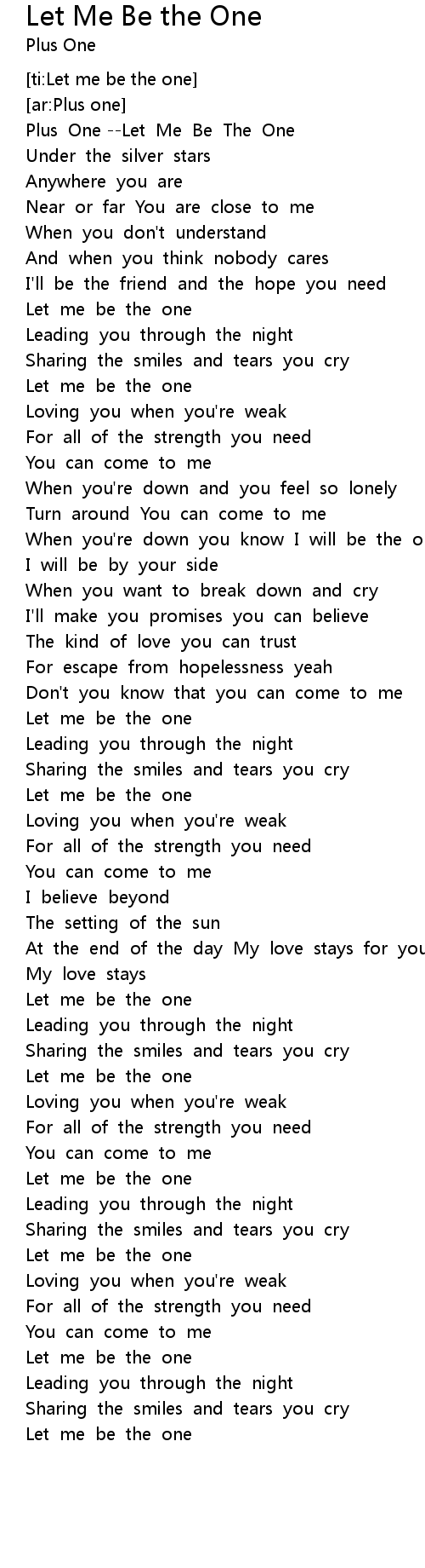 | [01:07.464] | When you're down you know I will be the only Come to me |