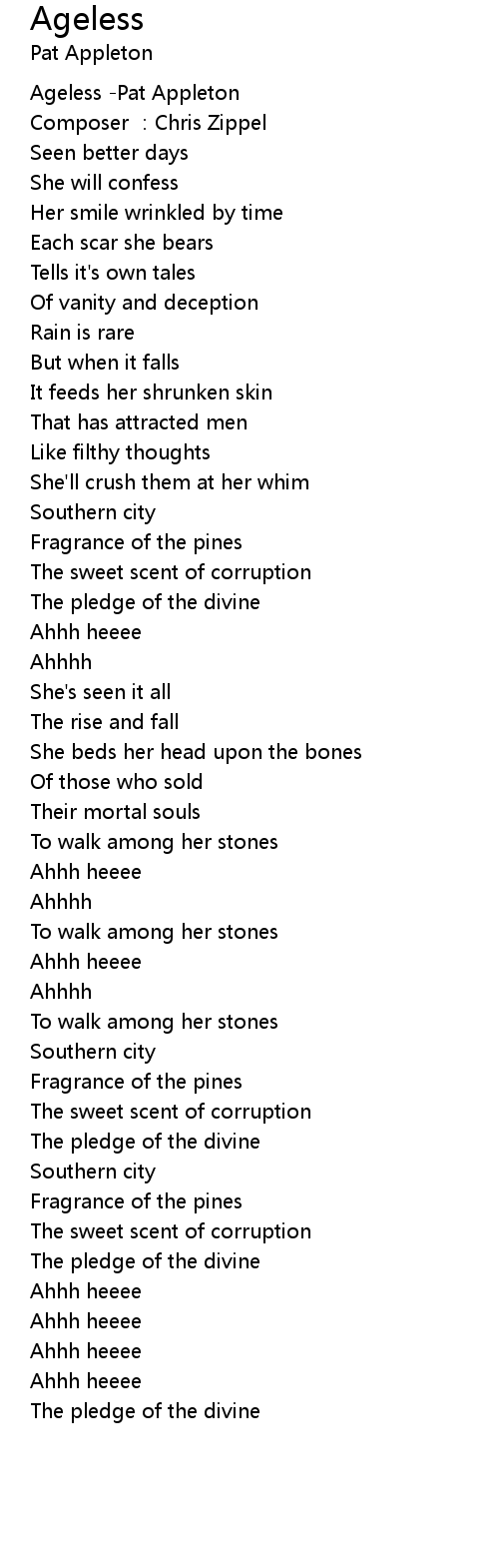 | [00:00.00] | Ageless Pat Appleton |