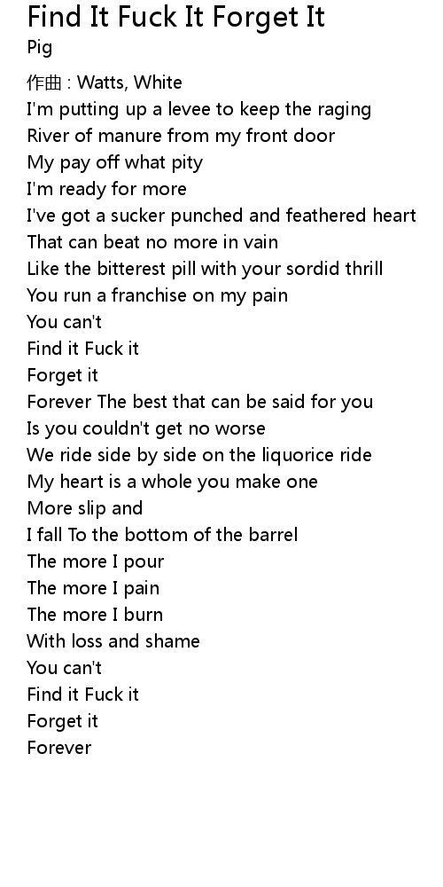 | Song | Find It Fuck It Forget It |