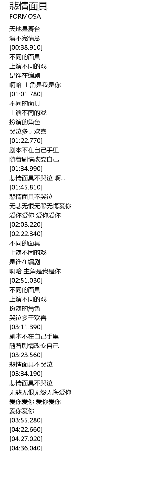 | [01:35.450] | 悲情面具不哭泣 啊... |