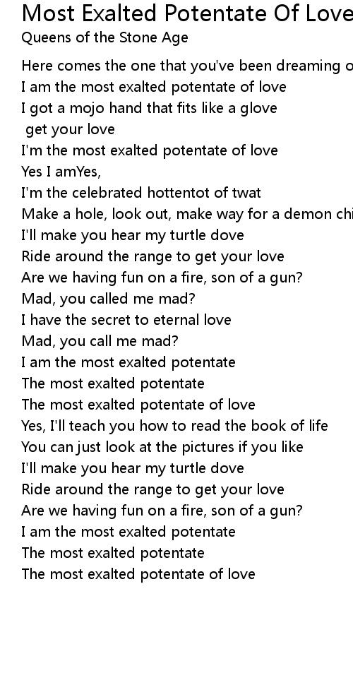 I'm the most exalted potentate of love |