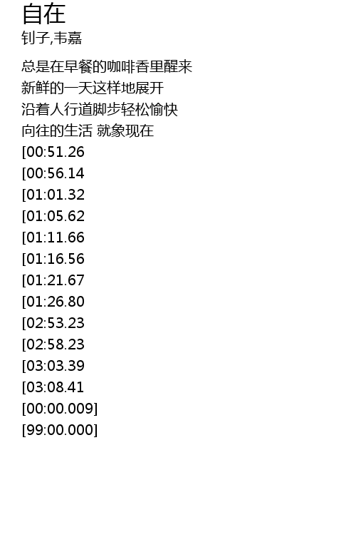 | [03:18.55][02:53.23][01:31.94] | 享受这自在 爱得够自在 |