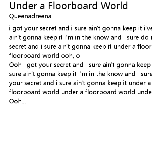| i got your secret and i sure ain't gonna keep it i've got your secret and i sure ain't gonna keep it i'm in the know and i sure do mean to reap it i got your secret and i sure ain't gonna keep it under a floorboard world under a floorboard world ooh, o | |