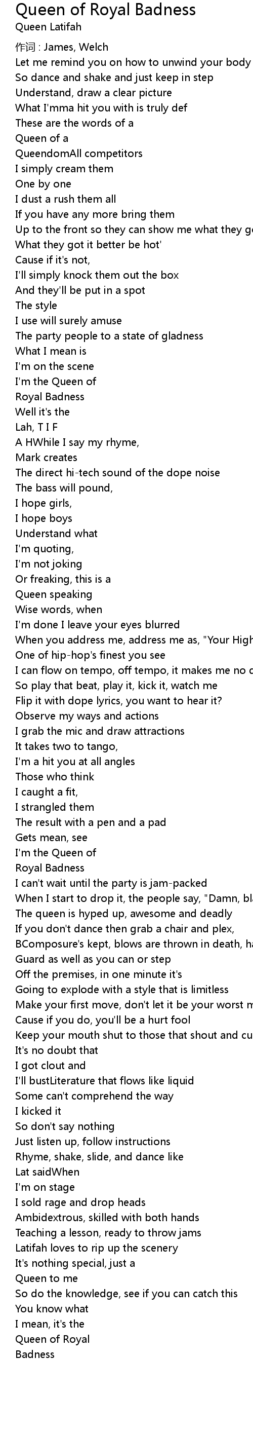 | Song | Queen of Royal Badness |