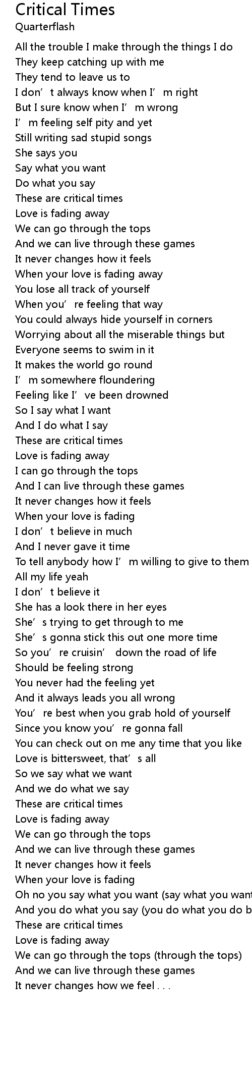 | Song | Critical Times |