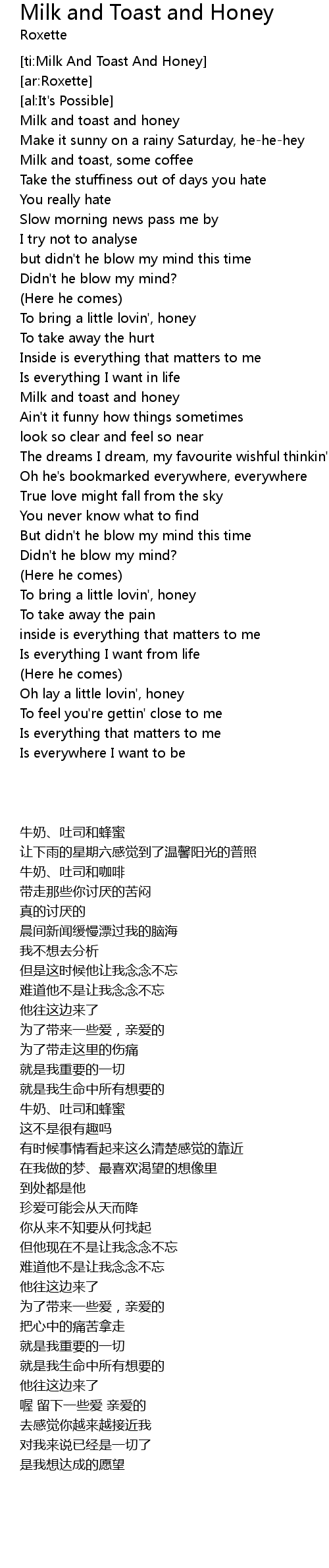 [ti:Milk And Toast And Honey] |