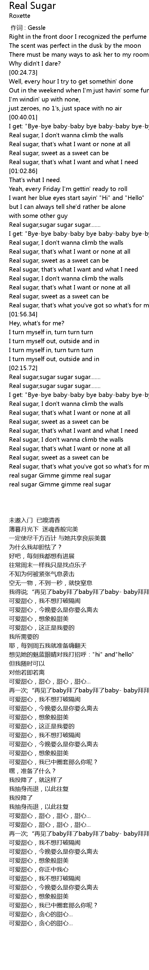 | [01:36.71] | Real sugar, that's what I want and what I need |