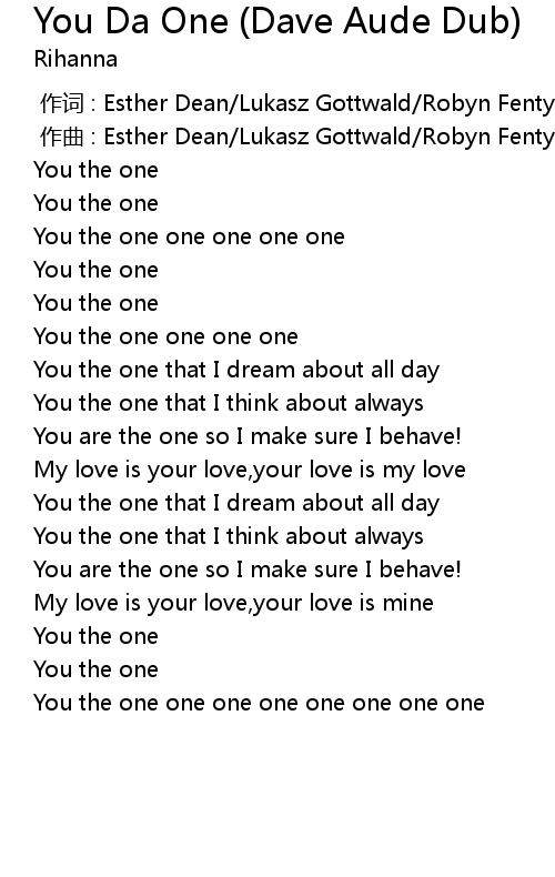 | [00:00.000] | 作词 : Esther Dean/Lukasz Gottwald/Robyn Fenty/John Hill |