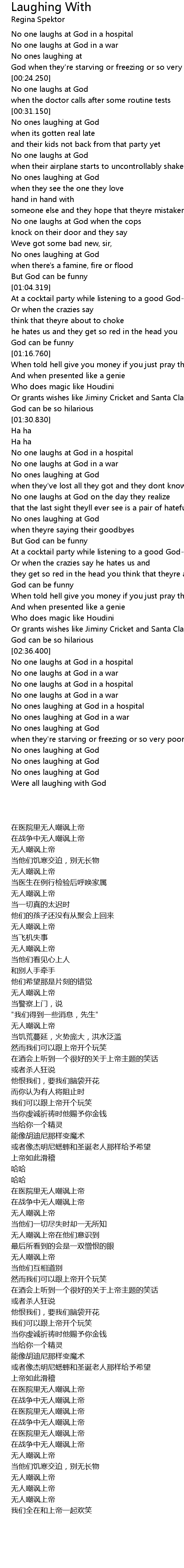 | [00:32.200] | No ones laughing at God |