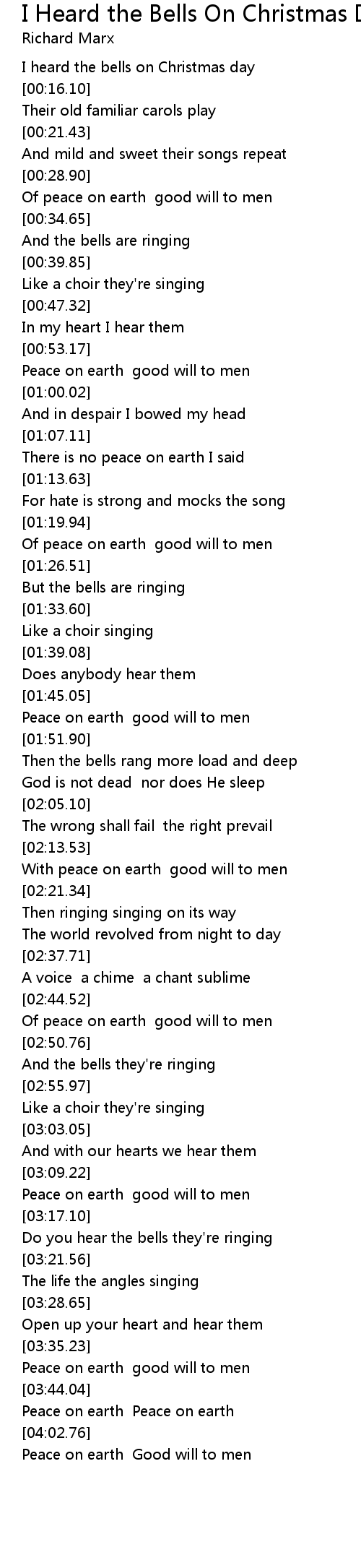 [00:10.94] I heard the bells on Christmas day