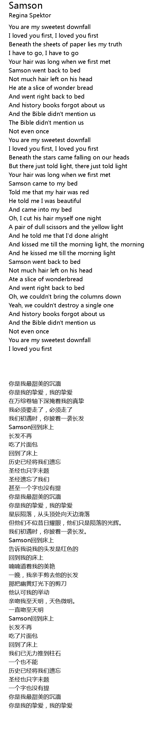 Samson came to my bed |