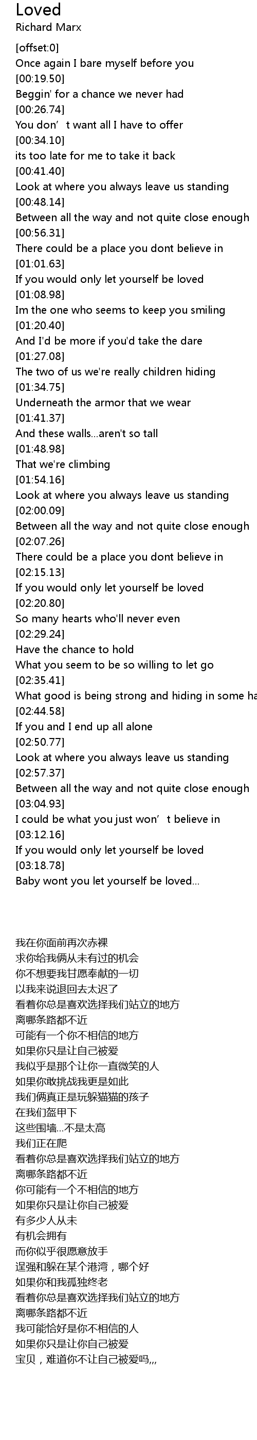| [03:21.28] | Baby wont you let yourself be loved... |