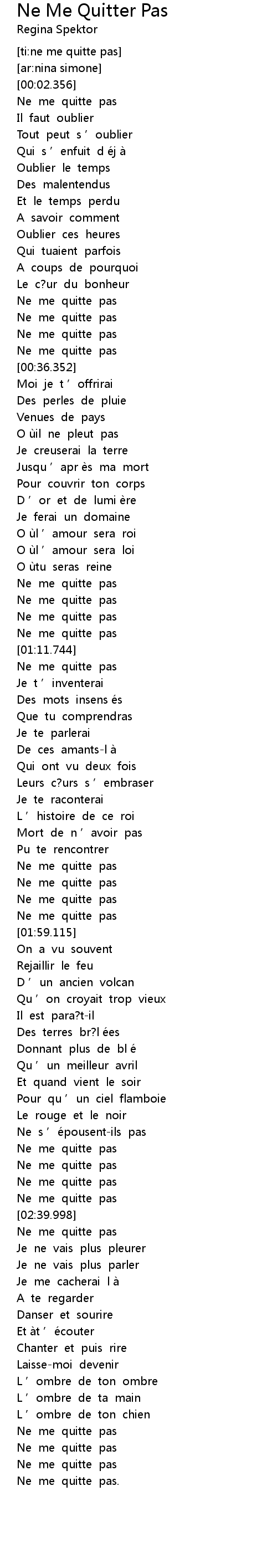 | [02:35.906] | Ne me quitte pas |