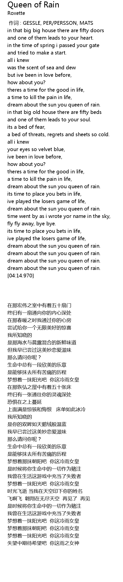 | [00:00.00] | 作词 : GESSLE, PER/PERSSON, MATS |