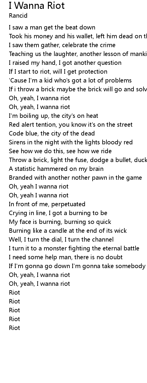 I Wanna Riot Lyrics