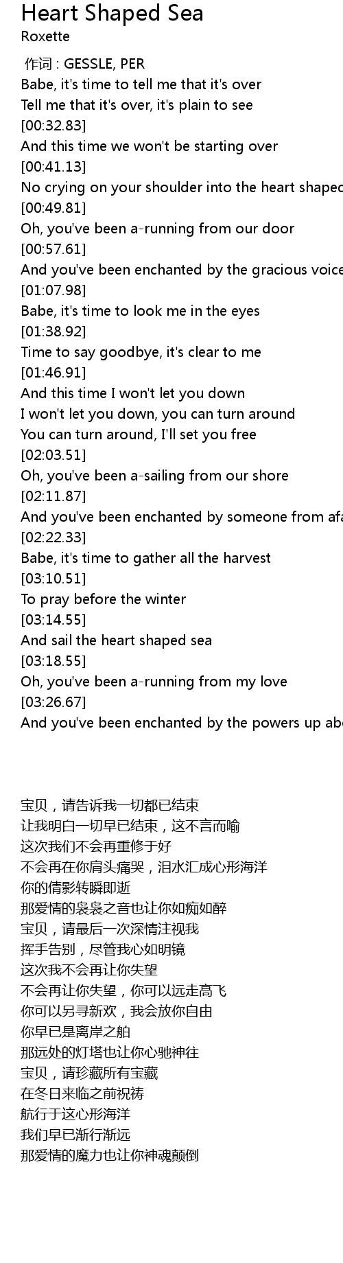 | [00:43.07] | No crying on your shoulder into the heart shaped sea |