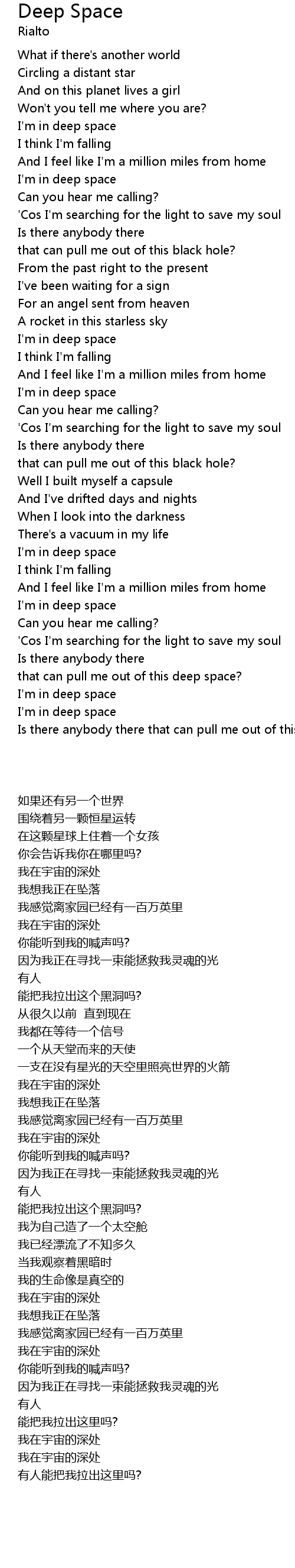 Is there anybody there that can pull me out of this deep space? |