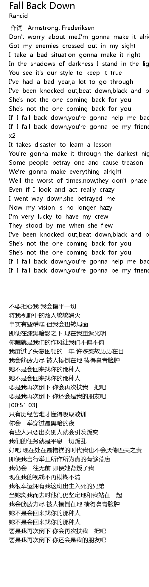 | [00:40.20] | If I fall back down,you're gonna help me back up again |