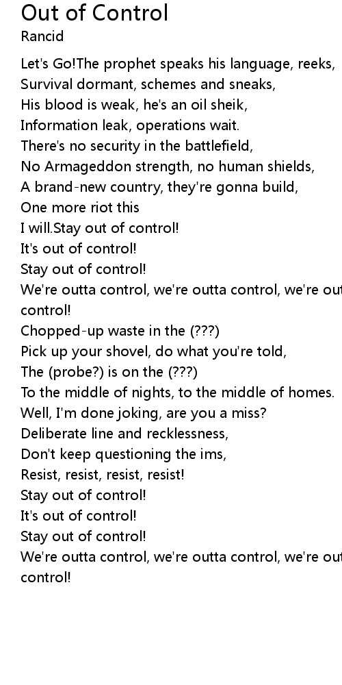 We're outta control, we're outta control, we're outta control, we're outta control! |