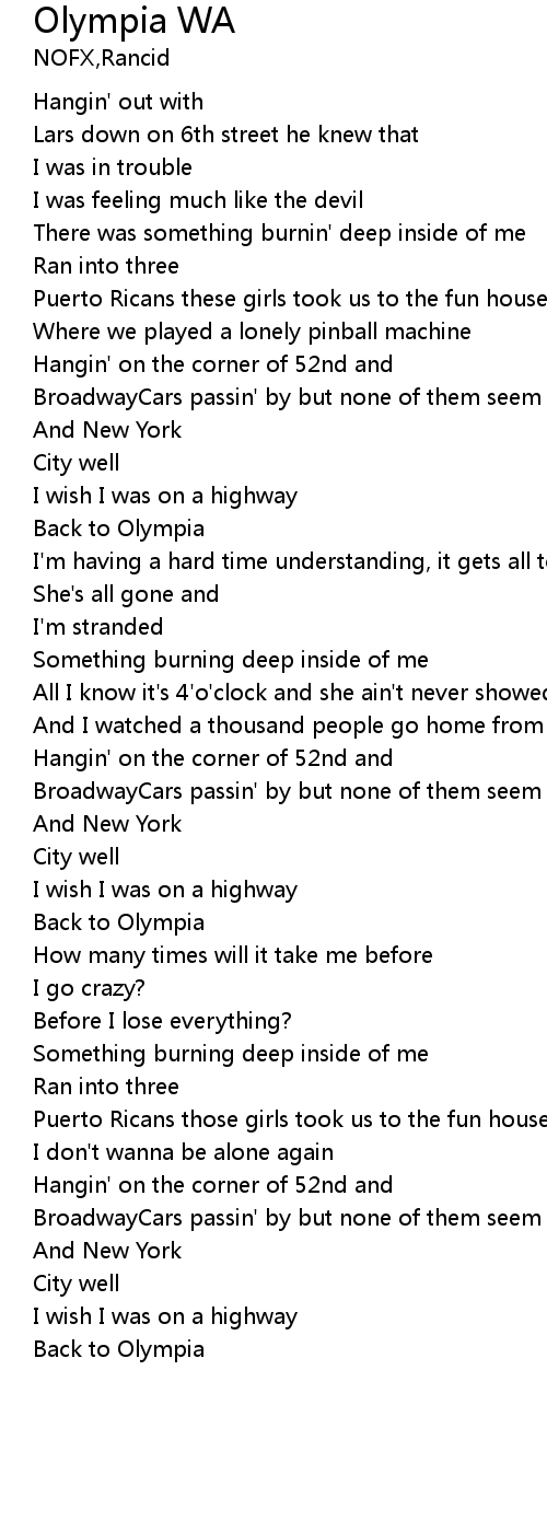 | BroadwayCars passin' by but none of them seem to go my way | |