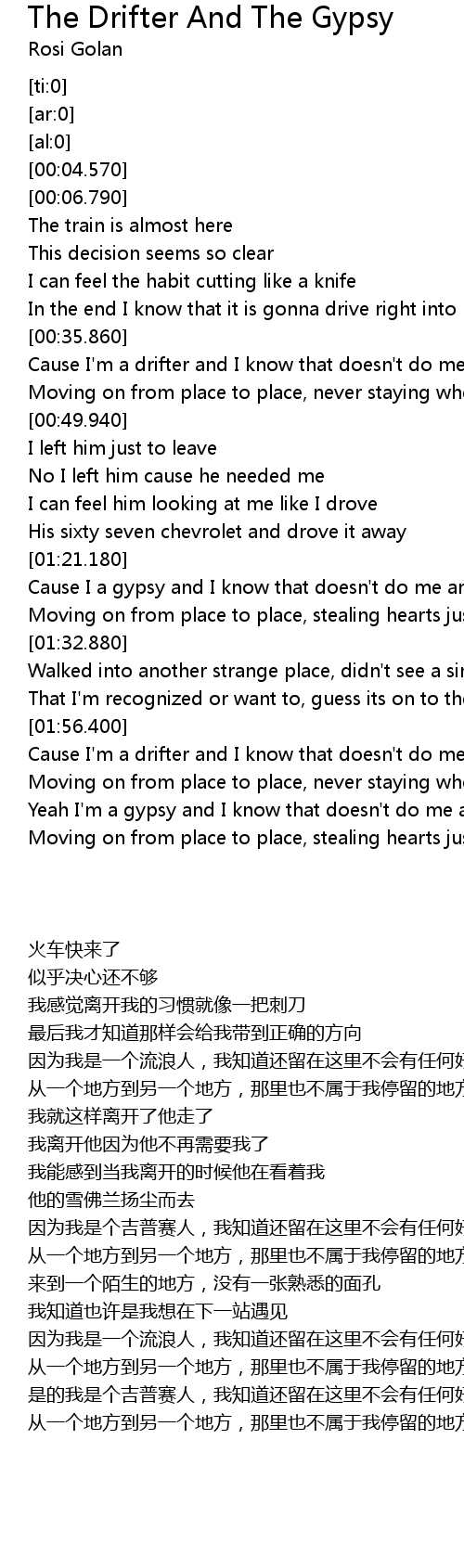 [01:23.330] Cause I a gypsy and I know that doesn't do me any good